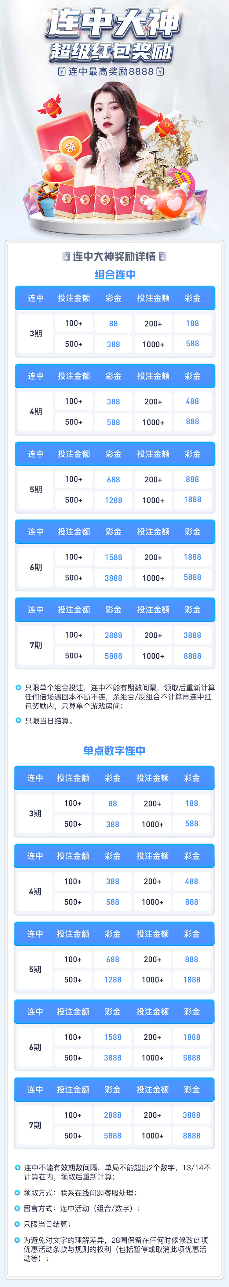 覆盖全网各种官方彩种,权威彩票,提供大小单双、组合、数字、龙虎等多元竞 猜。平均日500期开奖,28圈致力为玩家打造高品质的娱乐环境,安心乐享游 戏空间,只为公平、公正的开奖结果。